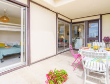 Residence Château d'Arcadie, 8 storeys. In the centre of Beaurivage, in the resort 700 m from the centre of Biarritz, excellent location: right in the centre but still quiet, 800 m from the sea, 1.3 km from the beach. For shared use: park 2'000 m2, garden (fenced). In the complex: lift, central heating system. Shop 600 m, grocery, restaurant, café 200 m, 5 minute walk to the centre, bus stop Saint Martin 350 m, railway station Biarritz 2 km, sandy beach Port Vieux 1.3 km. Golf course (18 hole) 3.9 km, surf school 800 m. Nearby attractions: Aquarium 1.3 km, Cité de l'Océan 2.6 km, Phare de Biarritz 2.9 km. Hiking paths: La Rhune 28 km. Please note: residence with electric gates. The keys‘ handover takes place by the agency INTERHOME. Airfield 3.5 km from the property.