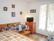 ReferenciaSapin B, 1-room studio 17 m2, on the ground floor. Living/dining room with 1 double sofabed (140 cm, length 190 cm), TV (flat screen). Exit to the balcony. Kitchenette (3 hot plates, oven, kettle, microwave, electric coffee machine). Bath/WC. Electric heating. Small terrace, east facing position. Parking. Please note: TV only FR. No lift.